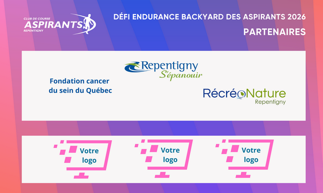 Le Club de course Les Aspirants remercie chaleureusement tous les bénévoles et les commanditaires qui offrent leur appui au club et qui lui permettent d’offrir au public des événements inédits, tel que le Défi endurance Backyard des Aspirants !